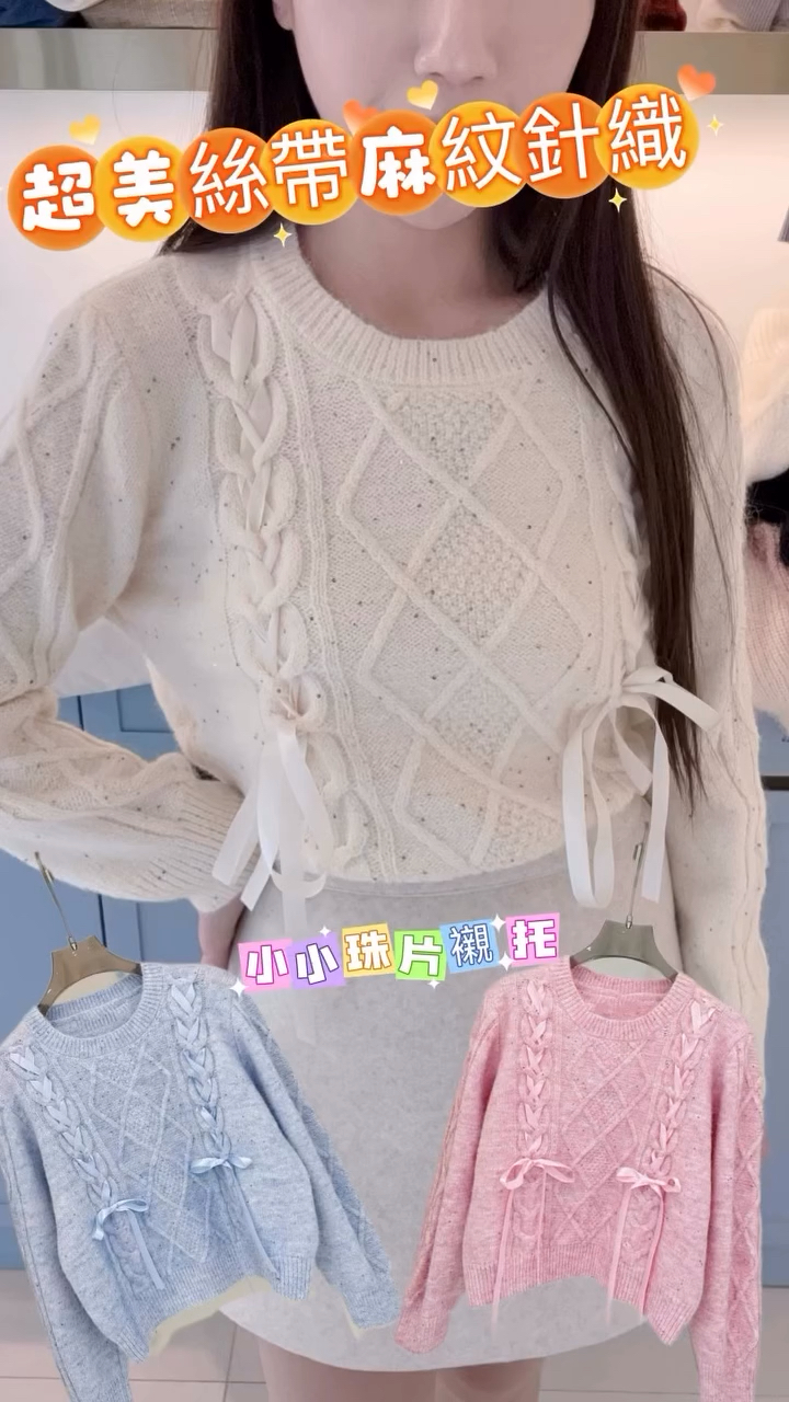 超美絲帶麻紋針織TOP