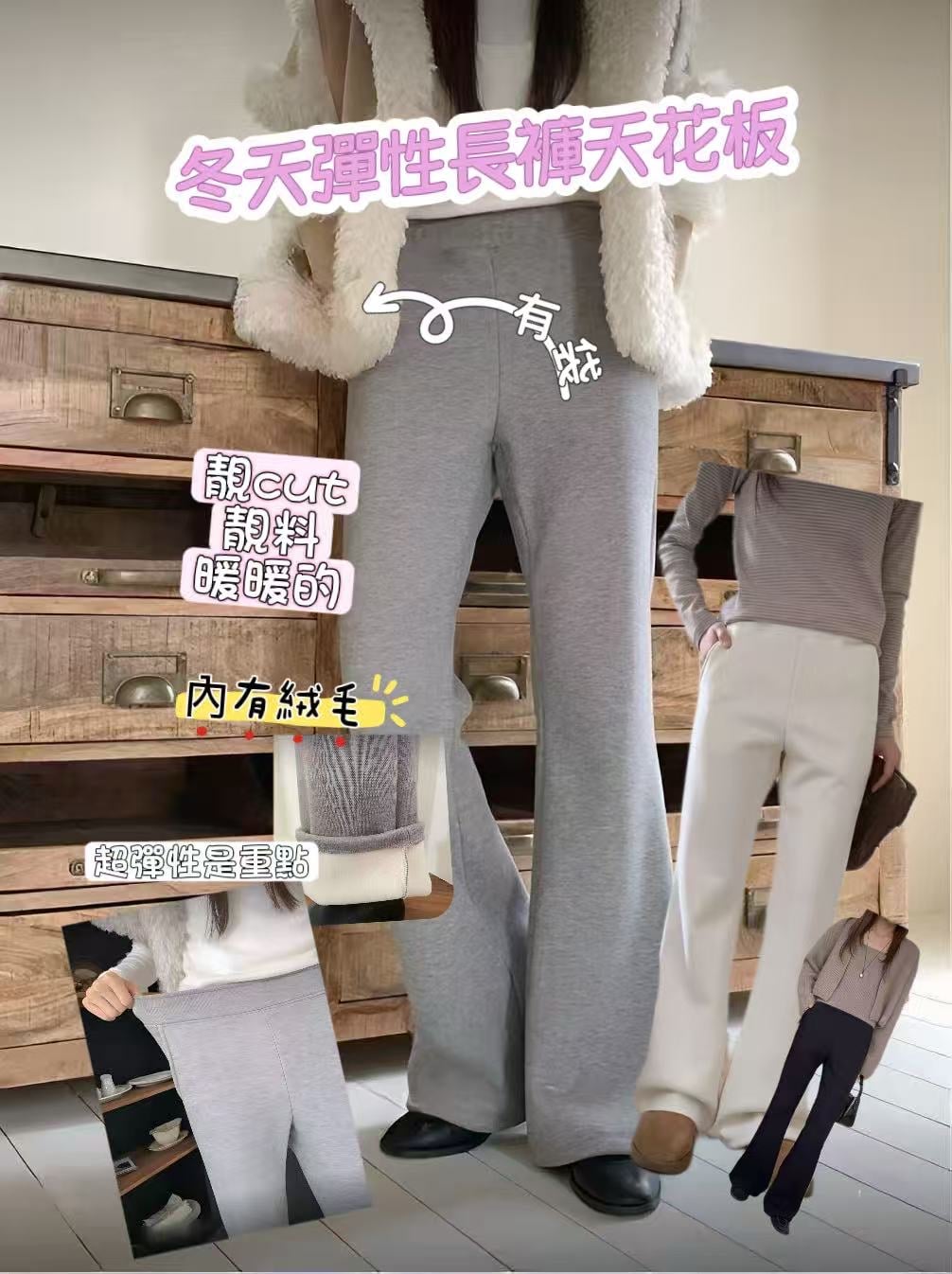 天花板冬天彈性長褲內有絨毛褲 9577#ff2573
