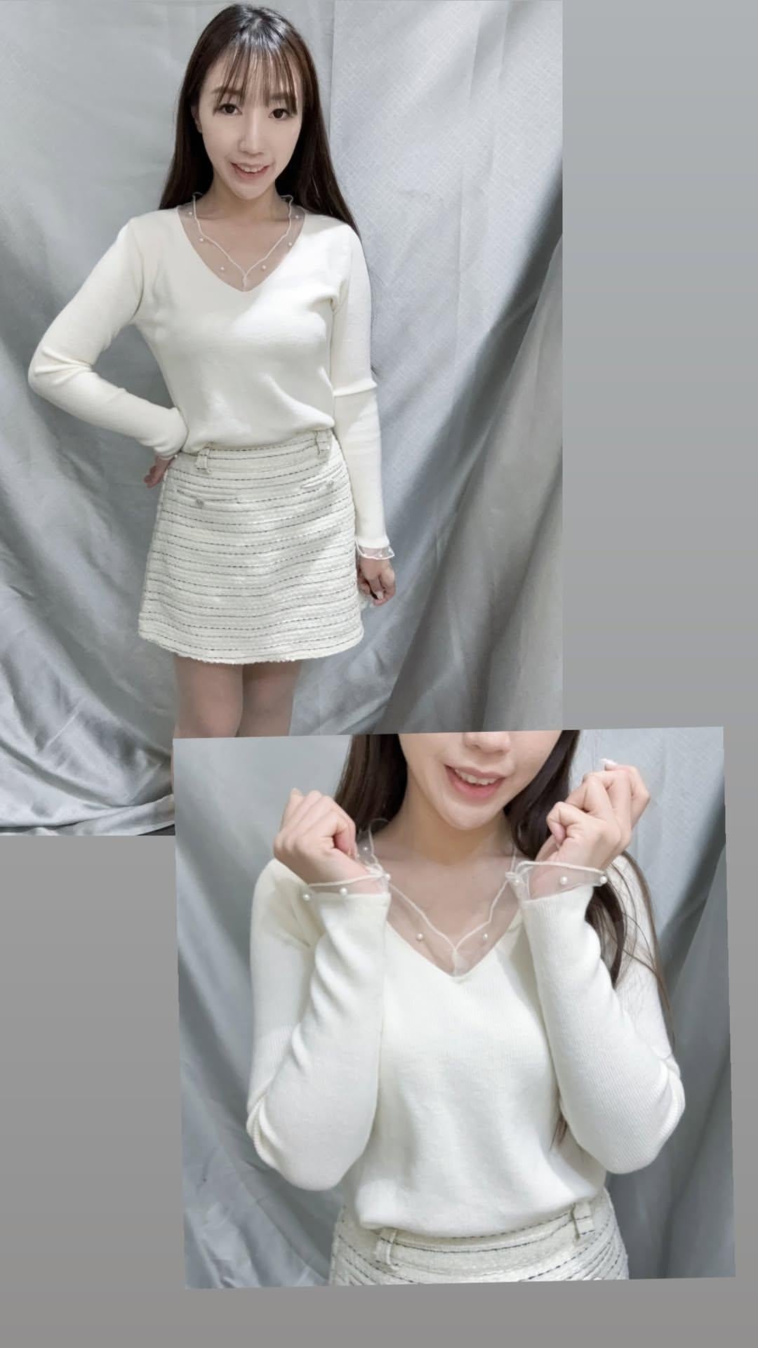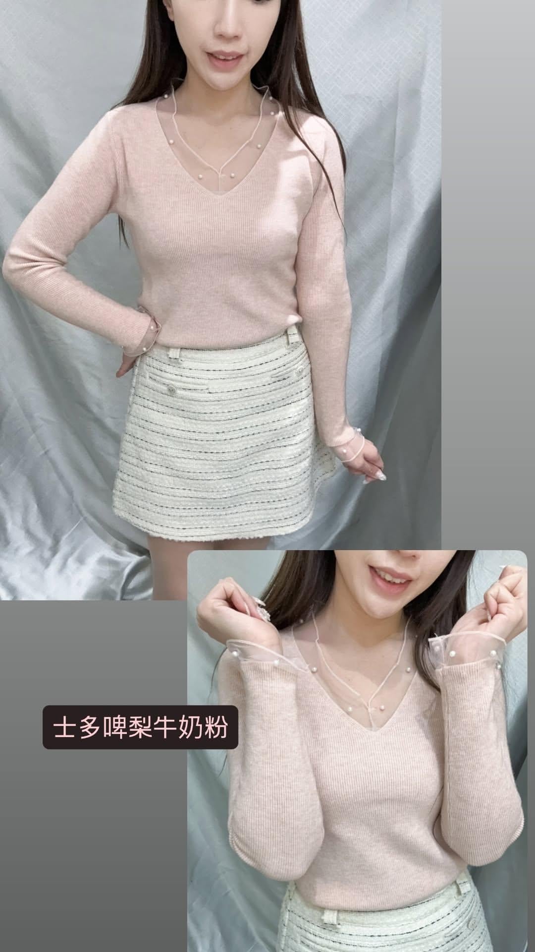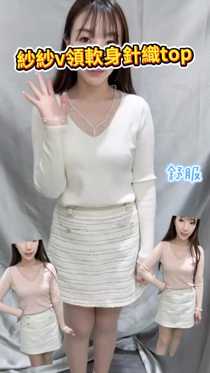 紗紗v領軟身針織top