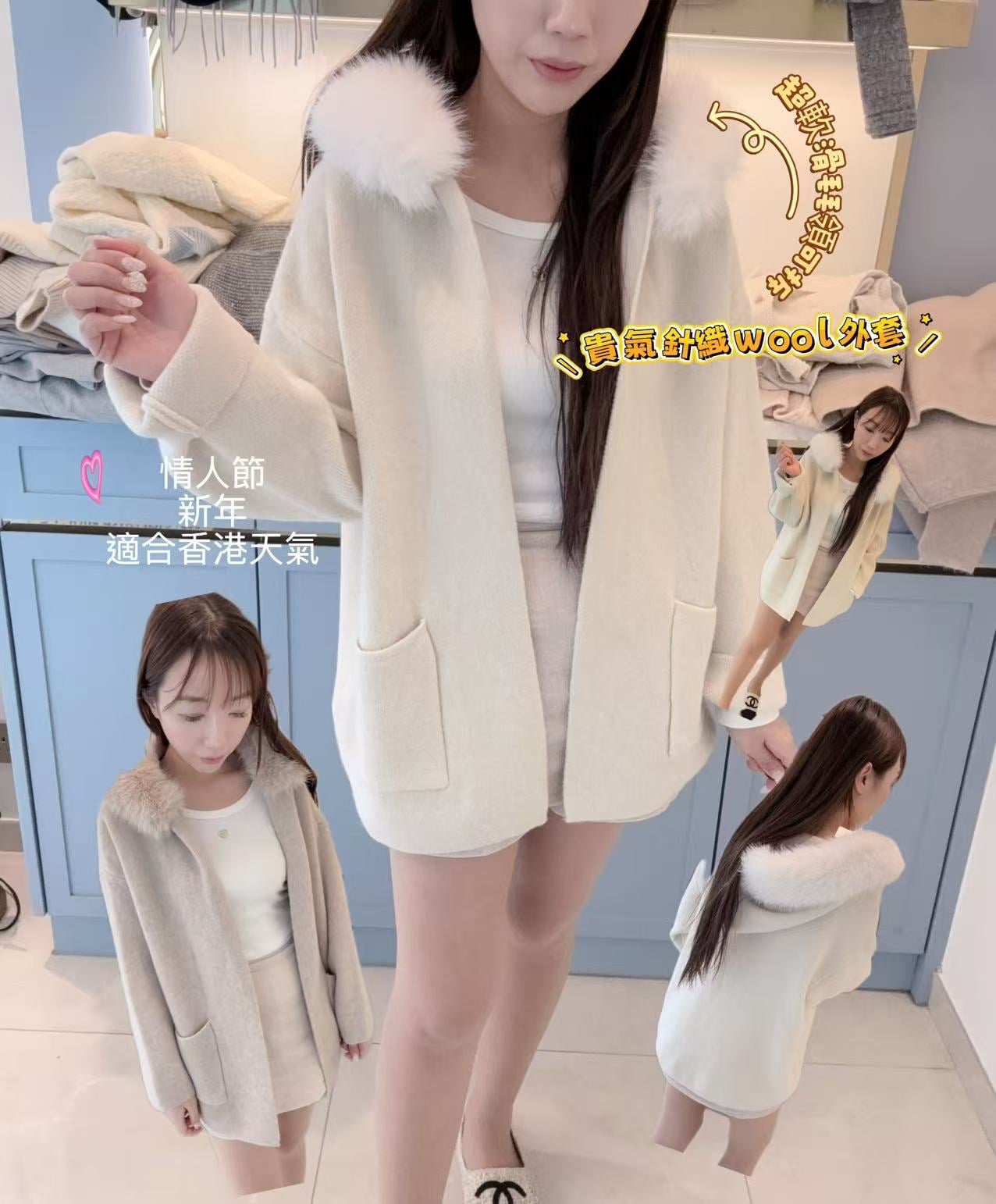 貴氣滑毛領針織wool 外套💛神級美 毛領可拆🔆有帽 質料超靚🟡 有袋 著起有種國際品牌的感覺 無論去高貴場合或者casual場合都完全可以用到 睇片可介紹➿➿➿➿➿ 想要就要立刻訂➿新年前好快斷貨 情人節/ 新年可以着🔸