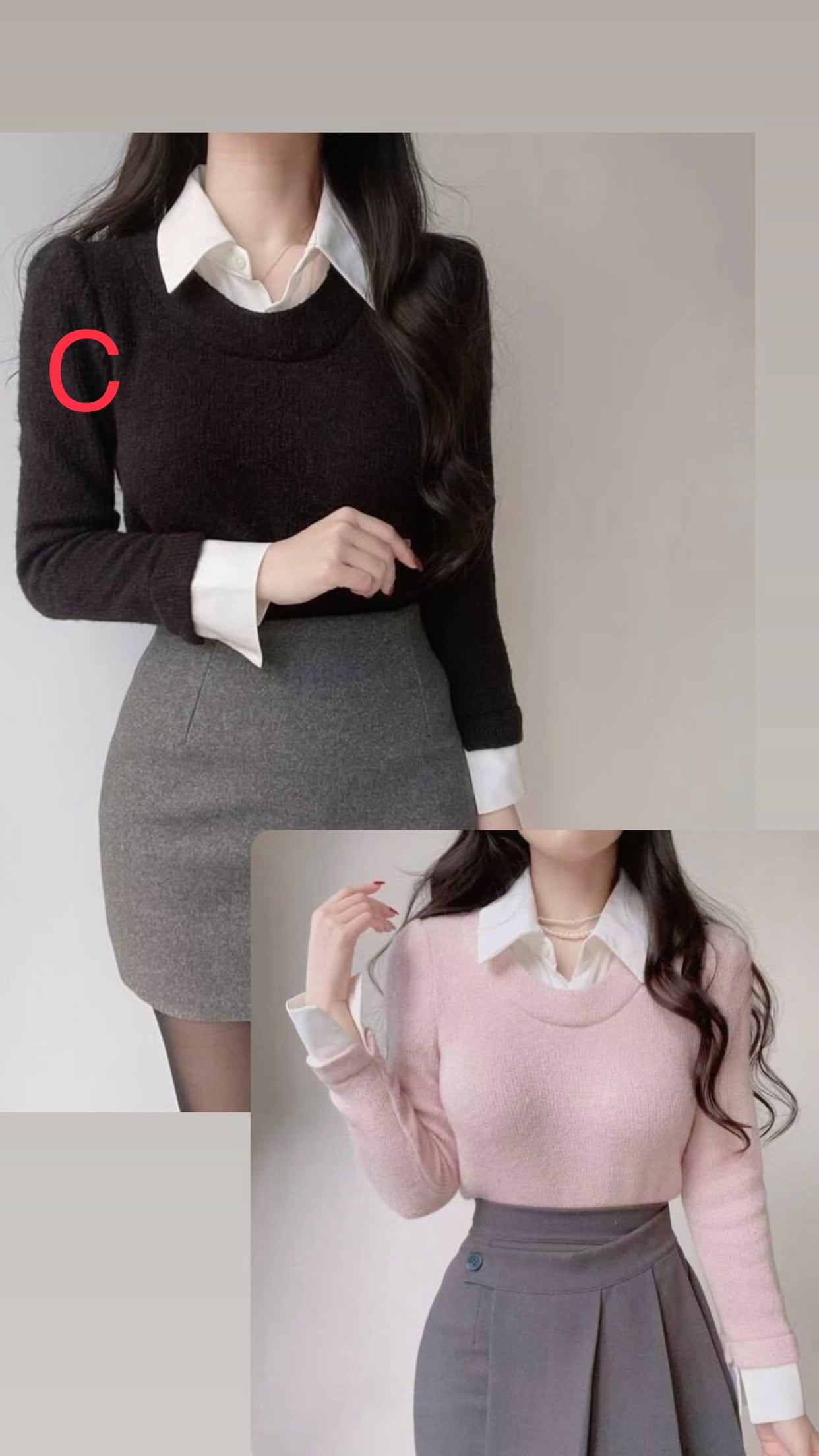 軟身假兩件針織9578#ff2574