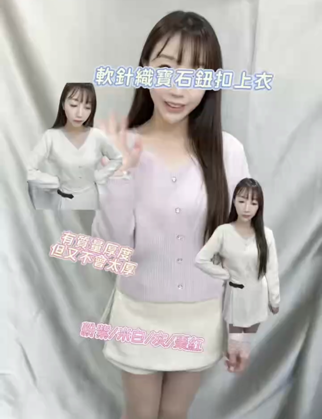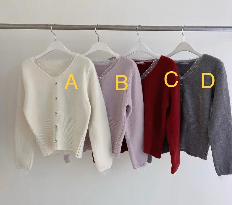 軟針織寶石鈕扣上衣TOP9572#ff2568